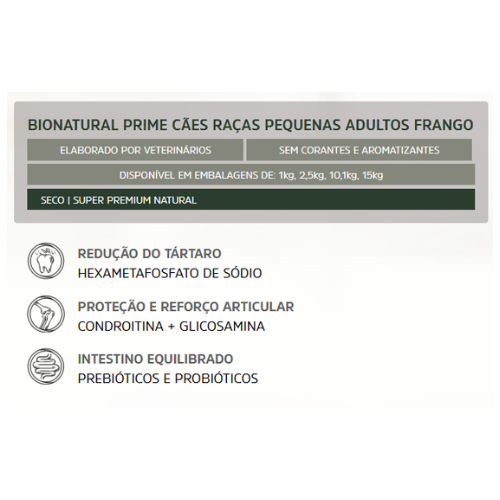 Diferenciais da Ração Bionatural para Cães Adultos Raças Pequenas Sabor Frango