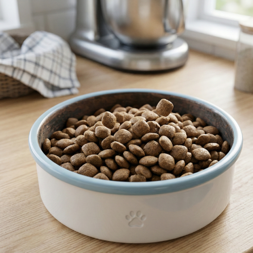 Monitore o peso e a condição corporal do animal mensalmente: você deve sentir as costelas levemente ao toque, mas não vê-las. Cão com excesso de peso reduz a porção em 10–15%. Cão abaixo do peso ideal aumenta em 10%. Consulte um veterinário para ajuste fino.