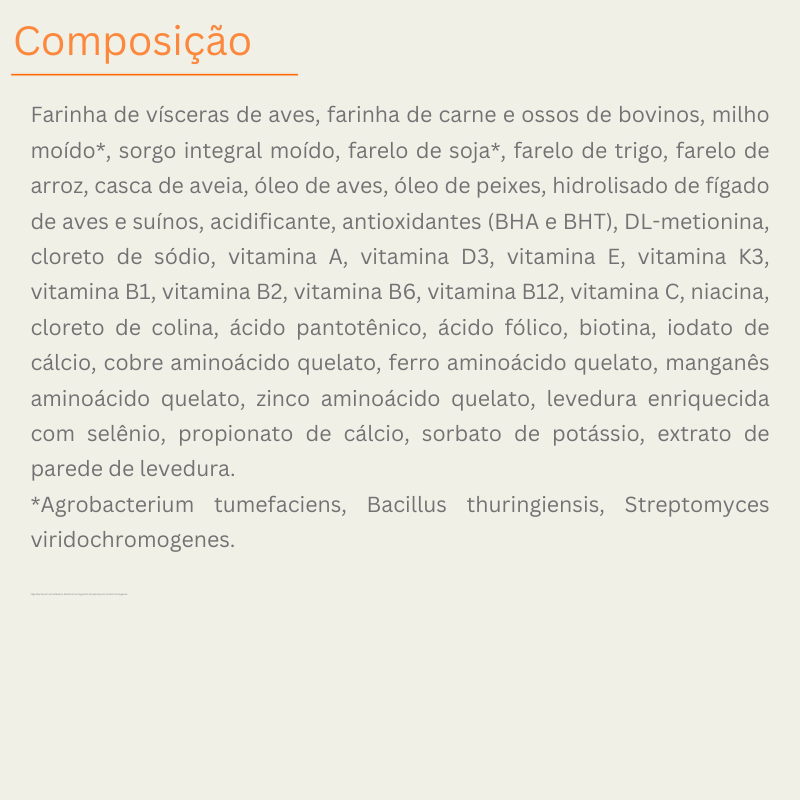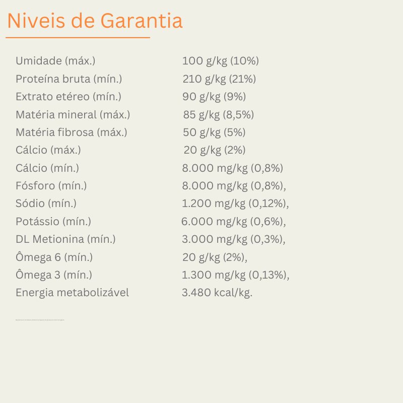 - Formulação completa com vitaminas e minerais: Suplementação balanceada de Ca, P, vitaminas A, D, E e complexo B — todos os micronutrientes essenciais em uma ração.