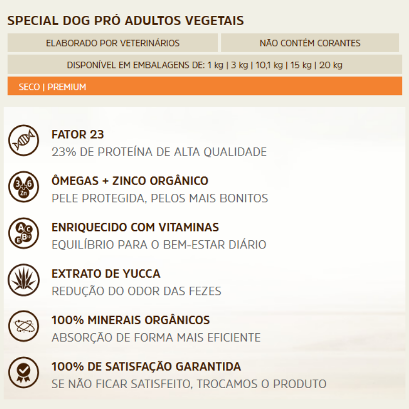 Diferenciais da Ração Special Dog Premium Pro para Cães Adultos Sabor Vegetais