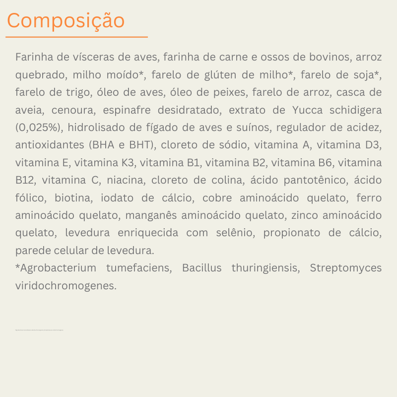 Esta ração contém corantes, conservantes artificiais ou subprodutos?