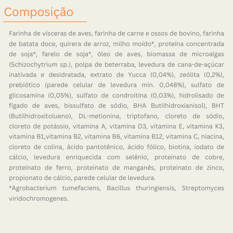 - Cálcio e fósforo calibrados para raças grandes: Proporção Ca:P controlada evita o crescimento acelerado demais que causa displasia — raças grandes se beneficiam de crescimento gradual e estruturado.
